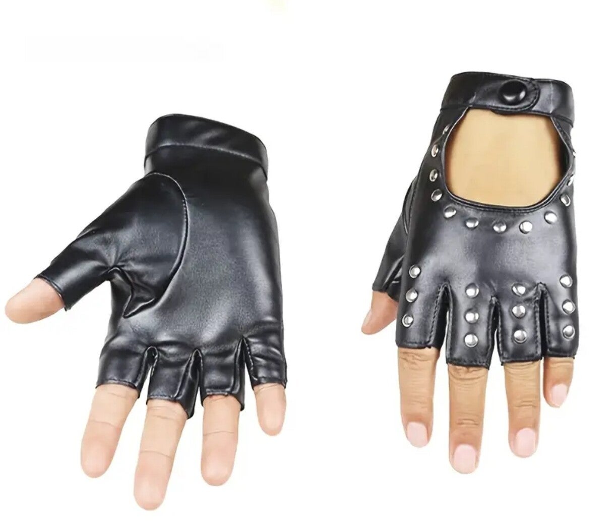 une paire de gants mitaine PU; taille unique, style punk/rock